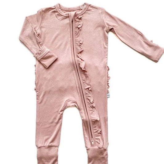 Ruffle Zipper One Piece - Dusty Pink - Bamboo