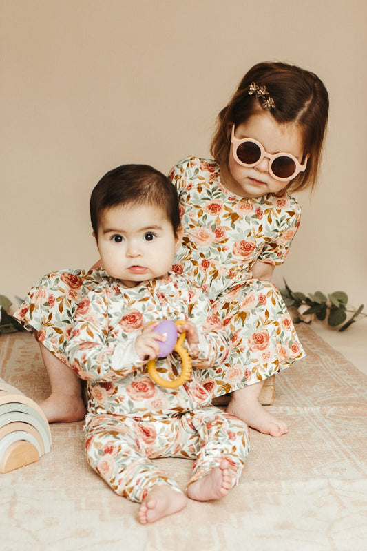 Ruffle Zipper One Piece - Dusty Pink Floral - Bamboo