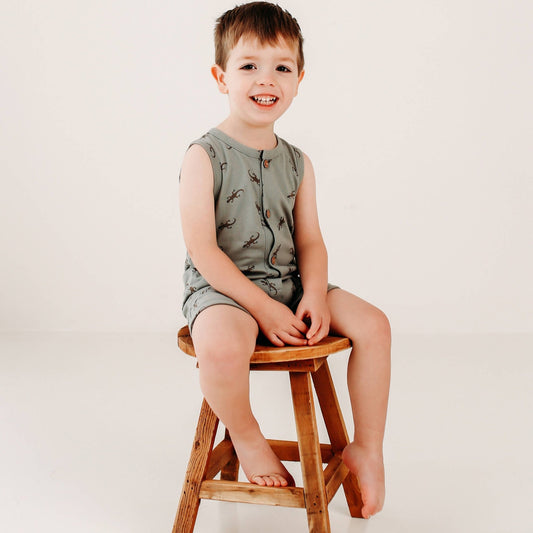 Henley Tank Short Romper - Salamander - Pond