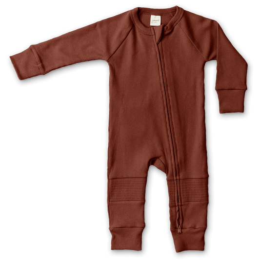 Rib Knit Zipper Romper - Redwood