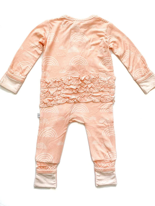 Ruffle Zipper One Piece - Blush Rainbow - Bamboo