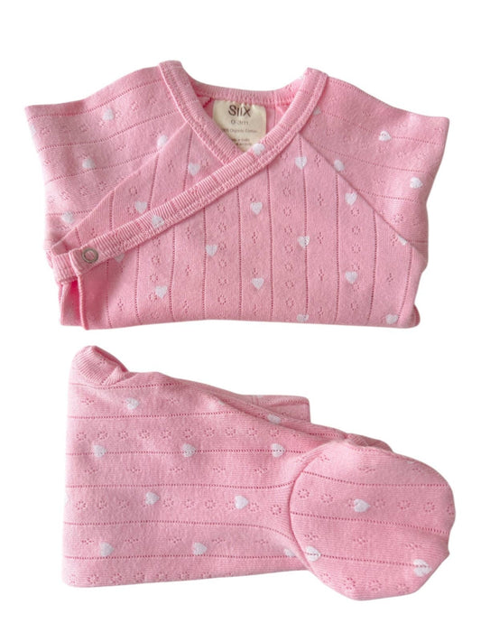 Organic Pointelle Set: Pink with White Hearts
