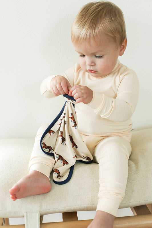 Navy Tiger Bamboo Lovie with Wooden Ring