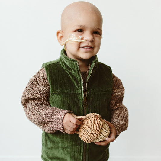 Kids Sherpa/Corduroy Reversible Vest - Spruce